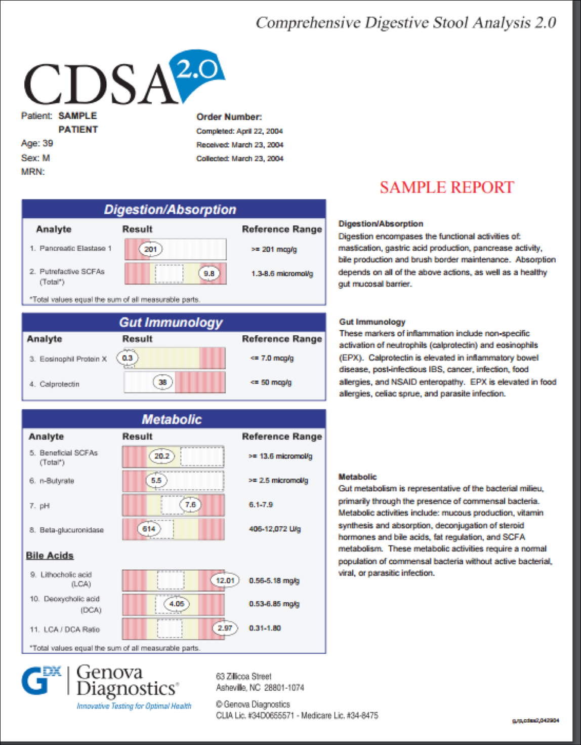 実際に当クリニックでは(初期で関節炎の痛みが強くない場合でも抗 CCP抗体が高い場合では)、米国Genova Diagnostics社のCDSA(便)検査を関節リウマチの患者さまにはお受けになって頂きます。